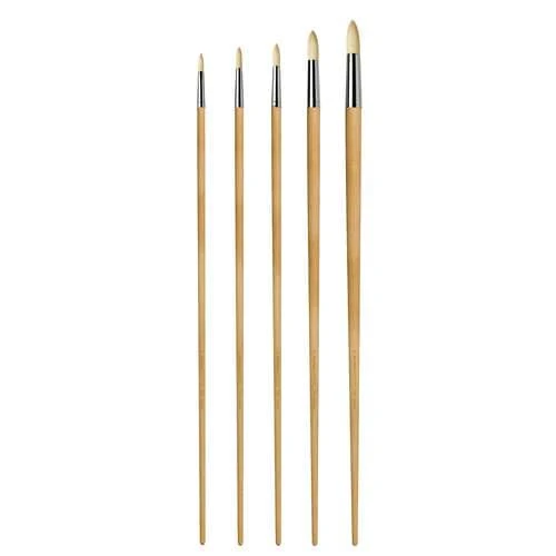 TIP: The long-handled special brush is advantageous for painting at the easel. The longer style enables the artist to paint the picture from some distance. Round brushes are ideal for details and drawing, linear painting.