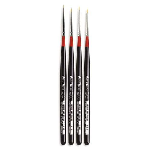 This da Vinci Micro-Nova Brush Set 4270 Series 170 contains 4 short handled brushes which are ideal for the smallest details in curves, lines or surfaces. They are particularly suitable for all types of miniature, tabletop and micro painting. This precise brush is perfectly modelled on Kolinsky hair in terms of elasticity and colour absorption and is characterised by the excellent painting properties of synthetic hair: