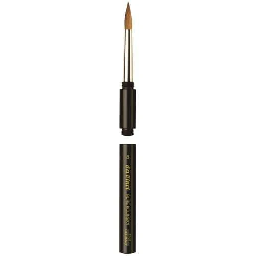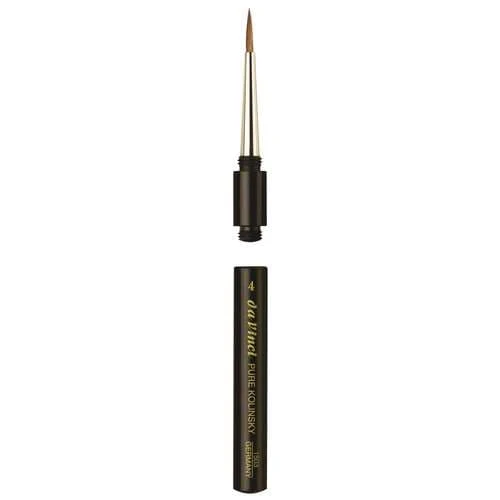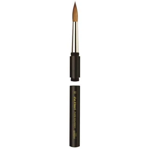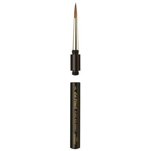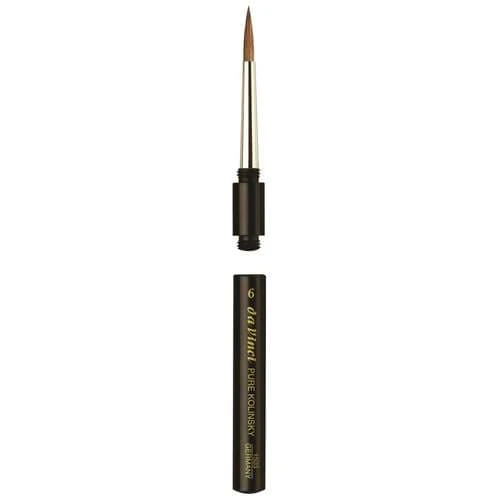 The da Vinci pocket brush series 1503 features a pure red, kolinsky sable watercolour brush with a double section black handle, which unscrews into 2 sections and forms a safe case for the brush.