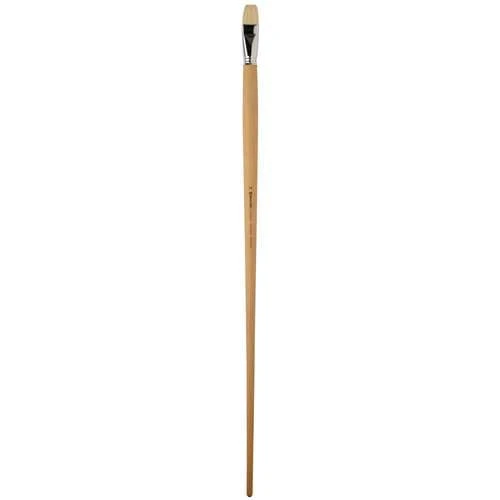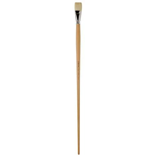 The 60cm handles of these Escoda Clasico Flat Long Handled Oil Brushes Series 4636 are made from lacquered best birch wood, with silver nickel ferrules. The brush head is made from high quality white bleached Chunking bristles which are naturally firm and elastic, and guarantee soft colour application and good colour flow. Flat brush heads are suitable for very fine lines as well as for two-dimensional colour application.