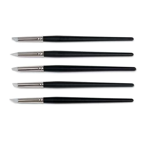 Honsell Soft Rubber Brush Sets contain 5 rubber-tipped brushes for modelling, moulding and mixing, and for creating special impasto effects.