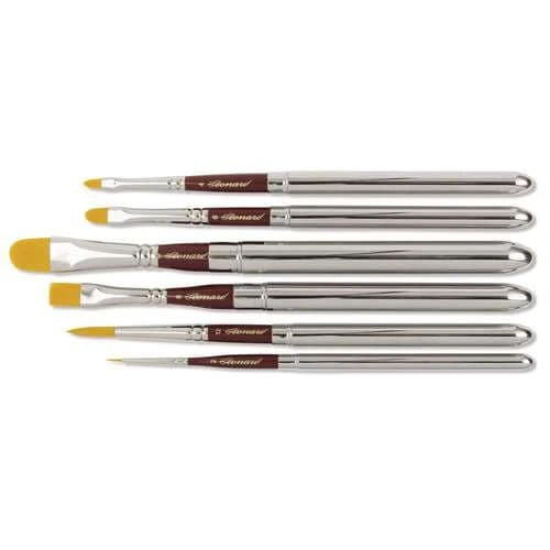 Léonard Evasion Flat Brushes Series 1581PL have orange synthetic fibre tips which combine flexibility and responsiveness. These brushes are ideal for all oil and acrylic work.