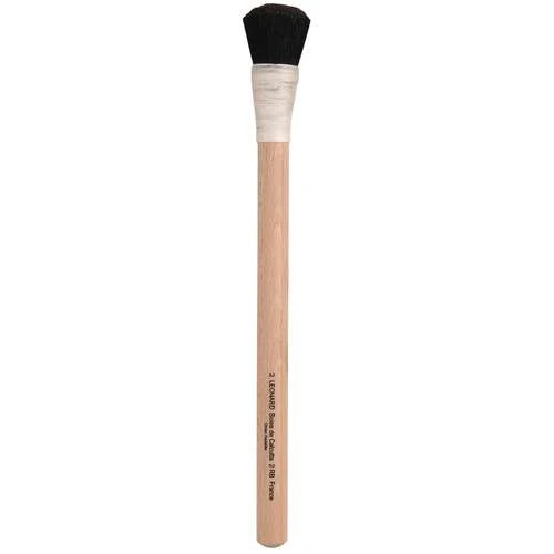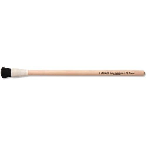 Léonard series 2RB round brushes, with curved black bristles tied together by a string and long, natural wood handles, ideal for polishing gesso when gilding.