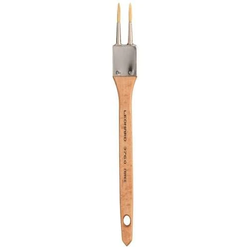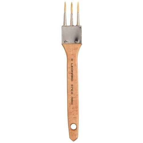 These Léonard Series 3760 RO Overgrainer Brushes are 3.5mm in diameter, with flat, natural wooden handles. The round-tipped triple bristles have pointed ends.