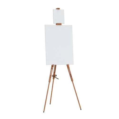 Mabef M29 AL easel, in oiled beech wood, 72cm wide, weighing 1.6kg, with a maximum height of 1.85m, and suitable for canvases up to 1.15m in height and 4kg in weight.