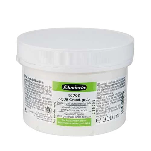 It is available in both fine and coarse finishes. Schmincke Aqua Primer can be tinted with watercolour or acrylic if desired. It should be applied in at least 3 layers by brush or roller in a criss cross pattern and, once dry, can be overpainted with watercolour.