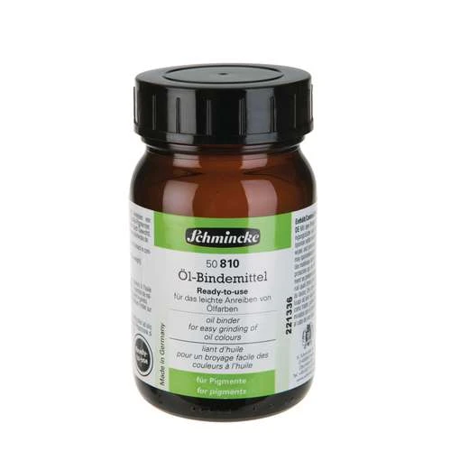 Schmincke ready to use oil binder, balanced, virtually non-yellowing, suitable for dark or light colours, and good for impasto techniques.