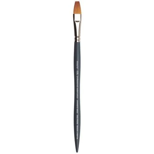 Each brush has a short, ergonomic, dark grey handle made from FSC® certified wood and a silver ferrule. The short flat tip is ideal for edges, shading and washes.